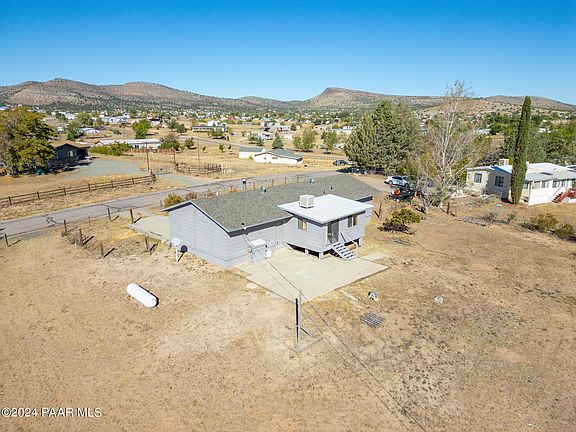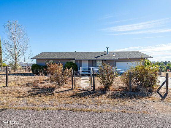 Enjoy the country life with gorgeous views! This 3 bedroom and 2 bathroom home has the essence of countryside living, offering space for your family, animals, toys, RVs and more! Amazing views of Granite Mountain and the rolling hills of Chino Valley. Inside you'll find a cozy living area with pellet stove, kitchen and dining room combo and bonus family room off the back. Two car garage. The one acre lot is partially fenced with large shed and ready for your personal touches. Paved road and easy access to schools, medical and shopping. See this home today! **red lines in photos are an estimate of the perimeter**