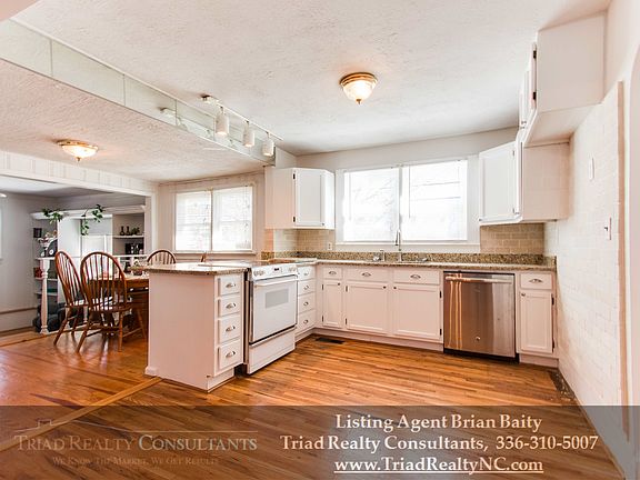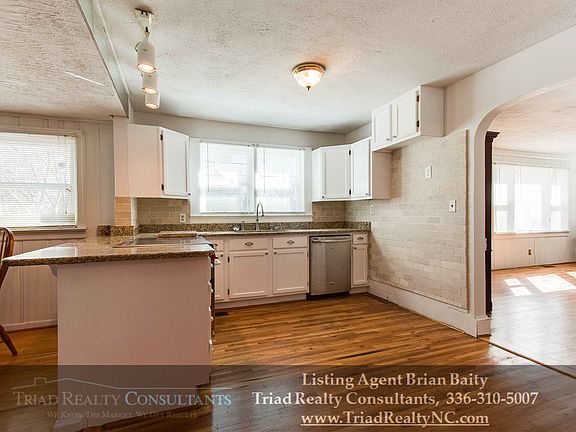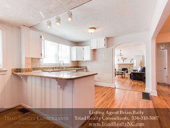 Cozy three bedroom home near Wake Forest University. Custom features, hard wood floors, built in shelves in the den, stone fireplace in the living room. Formal dining room. Kitchen with breakfast open to a sunken den. Large master bedroom with three closets and stunning 24' 10" by 9' 7" master bathroom with raised garden tub and separate walk in shower. New insulated replacement windows. Newer HVAC. Custom stone work and vinyl siding exterior. A must see.