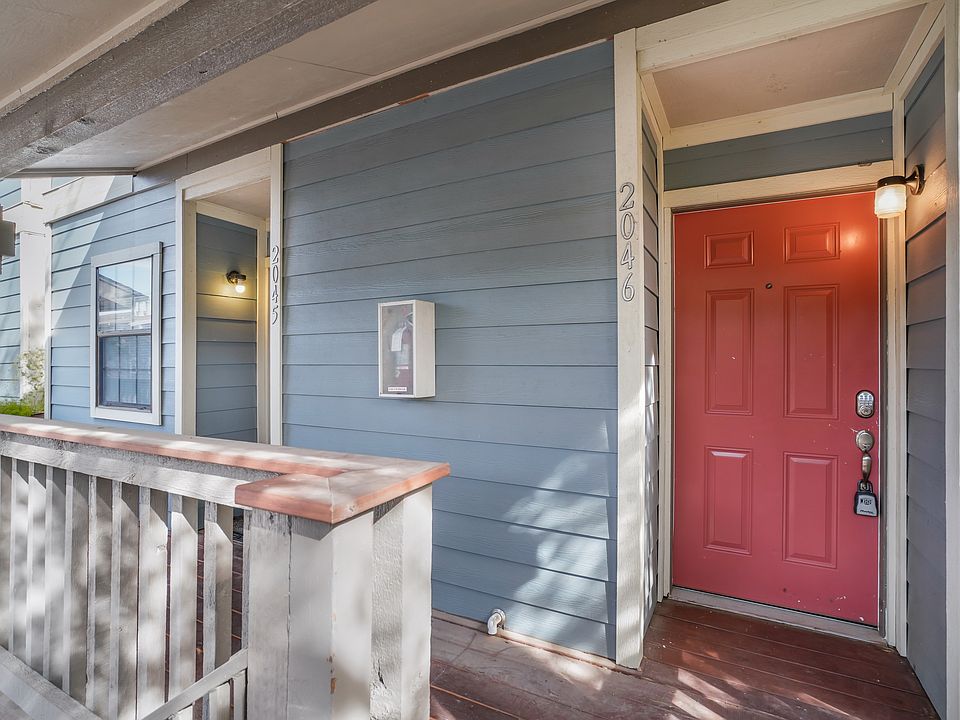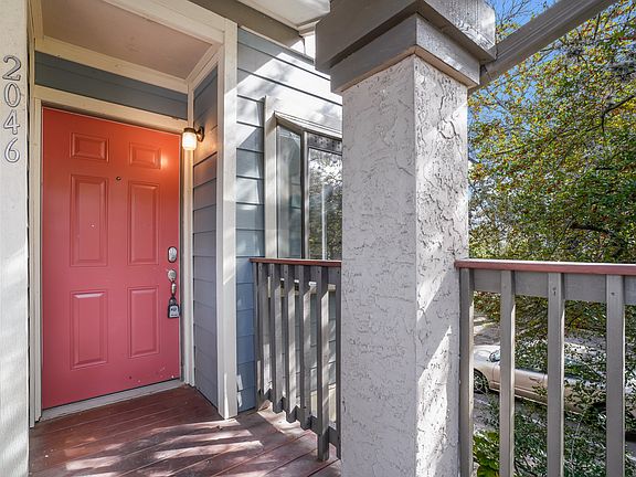 This top-floor, 1 bedroom, 2 story condo is located in the quiet gated community of Travis Oaks in South Congress, Austin! This corner unit is nestled in verdant surroundings and overlooks trees and the community pool. Enjoy an open layout that incorporates a stylish kitchen with sleek, black, chef-grade appliances, crisp white cabinetry, marble accent flooring, and a matching backsplash. The adjoining living room finds hardwood flooring, high ceilings, and direct access to a private outdoor patio. Upstairs you will find the primary bedroom with an en suite bathroom complete with an elegant walk-in shower and a walk-in closet. Other highlights include a washer/dryer in the unit and a covered carport with storage space. Stroll to your favorite Austin restaurants with Lucy's Fried Chicken across the street, Torchy's Tacos, Home Slice Pizza, Magnolia Cafe, Hopdoddy Burger Bar, and lots more.