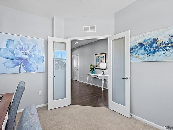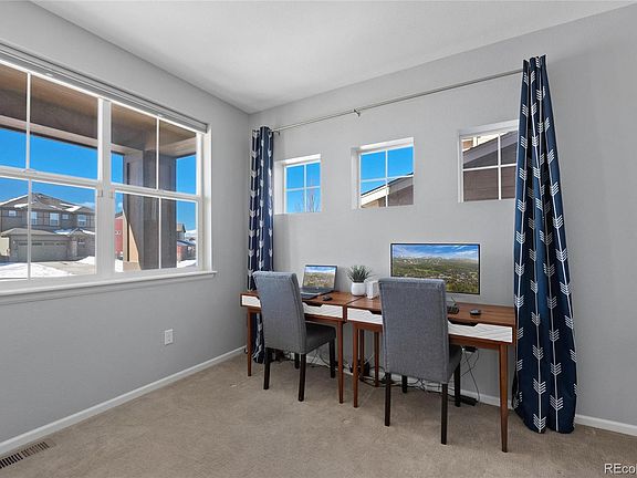 Stunning mountain views and a premier corner lot in a cul-de-sac backing to open space make this the perfect home in the highly sought after Anthem Highlands neighborhood. This gorgeous home features 5 bed/3.5 bath is just shy of 4000 Sq. Ft., offers an open floorplan, finished basement, and gourmet kitchen. The main floor boasts a separate main floor office, the perfect powder bath, spacious living room with shiplap accent wall, in-ceiling surround sound speakers, dining room with wainscoting accent wall, and gourmet kitchen with over-sized island, quartz counters, double oven, gas cooktop, and glass subway tile backsplash. The second floor is home to the relaxing primary suite complete with shiplap accent wall, sizeable walk-in closet, 3/4 Ensuite bath including large shower and double vanity with quartz counters, and convenient upstairs laundry room (washer and dryer included). The second floor also features a large loft with access to the front balcony with stunning mountain views, two secondary bedrooms and a shared Jack and Jill full bath with separate toilet and shower room. The finished basement features a large rec room with endless possibilities, 4th & 5th bedrooms with walk-in closets, and full bath with modern tile and large soaker tub, in addition to an abundance of storage options. Out back enjoy entertaining on the covered or uncovered concrete patios or gardening in the raised garden bed. This impressive Anthem home is nestled equidistance from Denver and Boulder in one of the most sought-after Broomfield neighborhoods. The resort-like master planned community features a 32,000 sq. ft. Rec/Fitness Center, 22 parks, 2 pools, 48 miles of trails, tennis/basketball courts, neighborhood events, & is home to 2 highly ranked schools including K-12 PRA and the P-8 public school, Thunder Vista, both within walking distance. Don't miss your opportunity to own this gorgeous Anthem home, schedule your showing today!