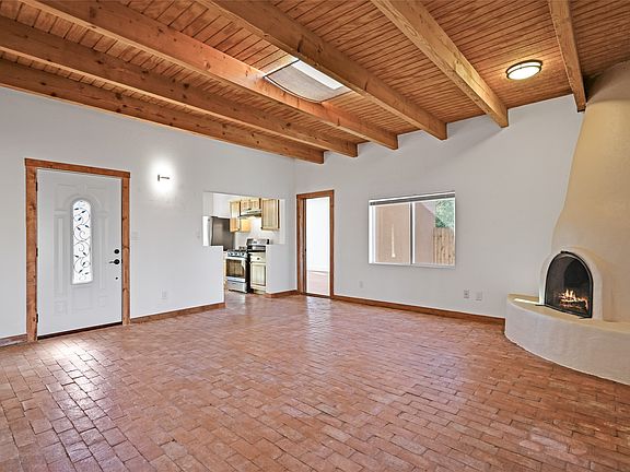 One of Santa Fe’s hidden gems, the 12-unit Charles Siringo Ranch Condominiums live like single family homes in the center of town on land once part of the original Charles Siringo Ranch. This home offers 1,511sqft of heated living space with a 3BD-2BA + bonus room configuration. The bonus room offers wonderful versatility and would make for a great office, fourth bedroom, studio, or den! Santa Fe-style finishes include a wood burning kiva fireplace, brick floors throughout, and high beam ceilings. The kitchen has been recently updated with granite countertops, stainless steel appliances and beautiful solid wood cabinetry. Thoughtful updates extend into both bathrooms with updated vanities, lighting, and other fixtures. Outside, the backyard is a low-maintenance, peaceful retreat with a large shaded wood deck, storage shed, and is completely enclosed. Conveniently located near grocery stores, restaurants, parks and other amenities, this gem off- the-beaten-path is not one to skip!