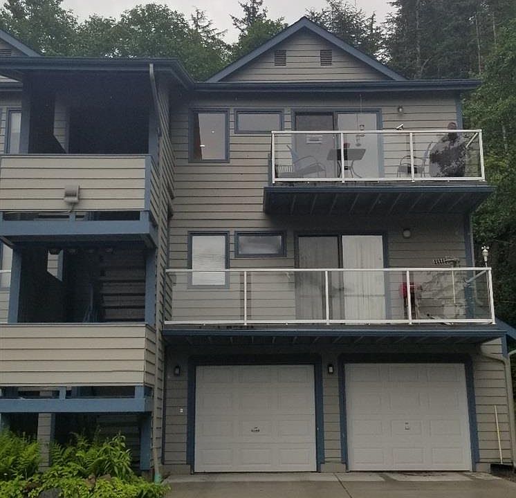 Not your average condo! Come check out this 3 bedroom, 2 bathroom, top floor/end unit with views! Hardwood floors throughout the kitchen and living room flow on to a deck with generous views. This end unit is nestled against forest and rock wall providing the privacy and serenity most condos lack. Laundry room located upstairs with bedrooms and garage provides enough room for vehicle, plus extras. Condo assessments are all paid for this unit. Brand new range, dishwasher, and water heater make this an easy choice for your next move.