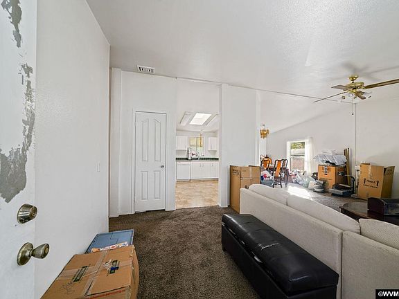 Accepted Offer with Contingencies. Back on Market, no fault to Home!!! Very Open and spacious 3bd, 2bth, one room set up for an office with built in shelves and desk, can be used as bedroom. Master has walk in closet and bath has a shower and separate soaking Tub. Skylight in kitchen. Vinyl flooring in kitchen,bath and laundry room. Carpet in living and bedrooms. Includes a carport and shed. Double wide on a large lot in Oak Hollow Park. Park approval required. Include Refrigerator, Washer and Dryer with full price offer.