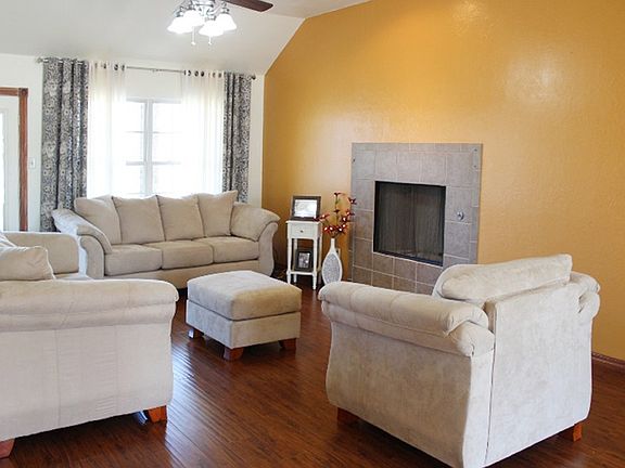 Located in Dove Creek, this home offers an open floor plan with plenty of room for the family with 1900 sq ft, 4 bedrooms, 2 baths, a formal dining area and a large living/family room with vaulted ceilings. Ample work space in the kitchen with plenty of storage, beautiful granite countertops, tile backsplash and a breakfast nook. Secluded, large primary bedroom, luxury ensuite bath with whirlpool tub, separate shower and spacious walk-in closet. Beautiful wood flooring in living room and formal dining room, tile floors in kitchen and both baths. Covered patio, wood privacy fence, 2 car garage, minutes from everything including Goodyear, Fort Sill, shopping and dining. This lovely property won't last long!