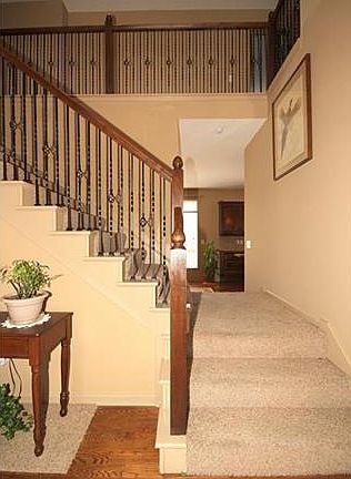 Gorgeous 2 story Craftsman inspired plan shows like new!! Updated paint,! Located on a spacious lot - fenced backyard greenspace. Kitchen has stained custom pecan cabinetry, hard wood flooring & island! Opens to breakfast room and living area with floor to ceiling windows. rod iron spindles & built-in seated coat rack, Romantic master suite with and 3 additional bedrooms up all with walk-in closets. 5th bedroom in finished basement also with walk-in closet w/bath & shower!