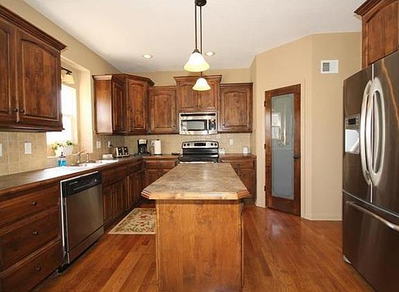 - Whirlpool Tub, Pantry, Sump Pump, Partial Carpeting, Kitchen Island, Stained Cabinets