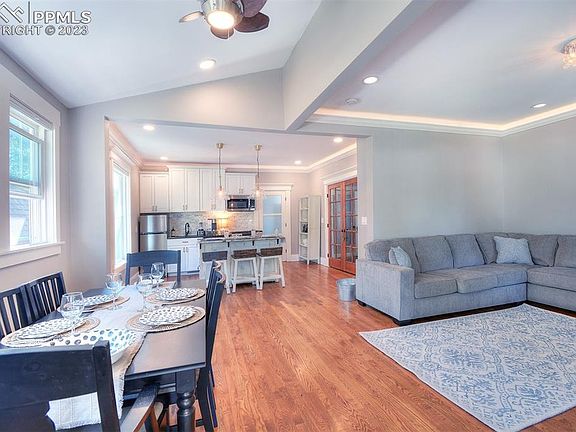 One of a kind income property located in the heart of Old Colorado City. This property includes four separate units with dedicated entrances. The main house has been completely remodeled with update electrical, plumbing, heating and cooling. The hardwood floors are exquisite and include the original character of the house while being blended with the updated kitchen that offers granite counters, stainless steel appliances, tile back-splash, a gas range and a living room that has a gas fireplace with a custom mantle. Just off the kitchen is bedroom with french doors and an adjoining bathroom that has tile floors and a stand alone shower. The kitchen also includes a butlers pantry, a laundry room and a walkout to the backyard. The upstairs has a gorgeous floor plan with three bedrooms that have dedicated bathrooms and kitchenettes. The bedrooms include granite counters with wet bars and custom cabinetry. Each bedroom has its own walk out deck with city and mountain views. The back cottage is fully furnished and offers a living room that flows into the kitchen and a bedroom that includes an adjoining bath. The additional building is plumbed for bathroom and is blank canvas to create your own studio with space for a kitchen and living area. This property has opportunity written all over it with commercial zoning enabling you to do short term rentals, run your own business or owner occupy and enjoy the passive income.