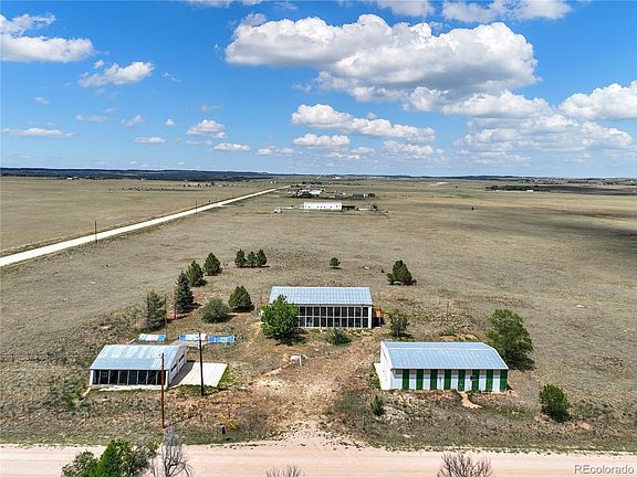 HANDYMAN SPECIAL!! A unique opportunity exists with this rare property located between Peyton and Calhan - only 15 minutes to amenities in Falcon. This 1-acre property can continue to be utilized as a single family home or it offers amazing potential as a commercial property with its unique A-35 zoning (contact El Paso County for additional information). This simple raised ranch home is a total of 3,600 SF; 1,800 SF finished on the upper level with 1,800 SF of unfinished space on the lower level. The house could easily convert to office type space and there is loads and loads of indoor storage capacity or workshop space on this property - perfect for a Home Occupancy Business set up! The house is constructed with heavy concrete blocks and both vertical and horizontal rebar - the blocks are also filled with concrete for additional reinforcement. There are steel joists supporting the concrete floor between the two levels as well. The lower level of this house has two 15'x14' rooms as well as a large open space area 15'x28', all with garden level windows that bring in lots of natural light to this space. It also has four 14'x14' identical rooms (no windows) that are ideal for storage or separate office/work spaces. The 30'x50' shop building offers robust 220v power and has two 9'x9' sliding doors and ready to store all of your equipment! Passive solar for both the house and the 2-car detached oversized garage to keep heating costs low in the winter and the concrete walls help keep this home cool in the summer. The property does need some TLC, but it offers a great opportunity for the right buyer - the possibilities are endless! This property is being sold in its present/existing condition.