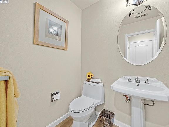 Don't miss this absolutely gorgeous Palomares Hills townhome. This lovely home is light & bright, w high ceilings & new paint throughout. Gorgeous Canadian maple hardwood floors greet you as you enter the space. Perfectly appointed with a living room w fireplace. The spacious kitchen has beautiful cabinetry & stainless steel appliances, including a double oven. The stylish backsplash & granite countertops shine in the spacious area. There is an abundance of counter space & a large pantry for all your storage needs. A separate dining area flows from the kitchen & allows you to enjoy meals while overlooking the remarkable view & is open to the other living areas. The primary ensuite is vast and spa-like. Imagine unwinding after a long day in your resort-like ensuite, while enjoying the views galore. The primary bedroom also includes a nice walk-in closet, with closet organizers. The primary bathroom has double sinks, a large tub, shower & windows. 2 car garage detached with epoxy flooring & custom cabinets. A part of the highly rated Castro Valley School District/Jensen Elementary Don't miss the opportunity to be a part of the very desirable Palomares Hills Community, and enjoy amenities such as community pools, clubhouse, playgrounds, tennis & basketball.