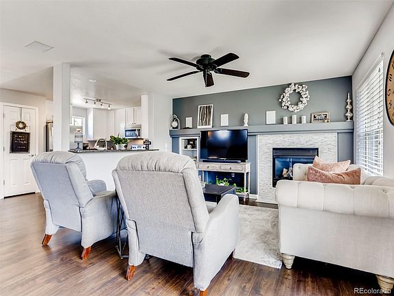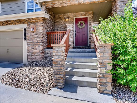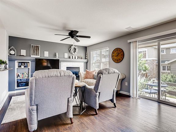 This charming 2-story end unit in Ridgeview Eagle Bend is turn-key ready. Featuring 2 bedroom, 2 full bathrooms and a ½ bath on the main level. The main floor has an open floor concept and the many windows make it bright and cheerful. Backs to a small greenbelt. Central air, ceiling fan and updated fireplace, granite countertops, new paint, new engineered hardwood flooring on main level. The 2nd bathroom has been updated with new vanity, tile flooring and light fixture. It offers a 2 Car Attached garage and an unfinished basement. Community pool and playground. You will not be disappointed. Low maintenance living! This townhome is in a popular area, and located near many parks, shopping, restaurants, minutes from Saddle Rock Golf Course, has easy access to E470, and is in the Cherry Creek School district. This is a must see! Welcome home!