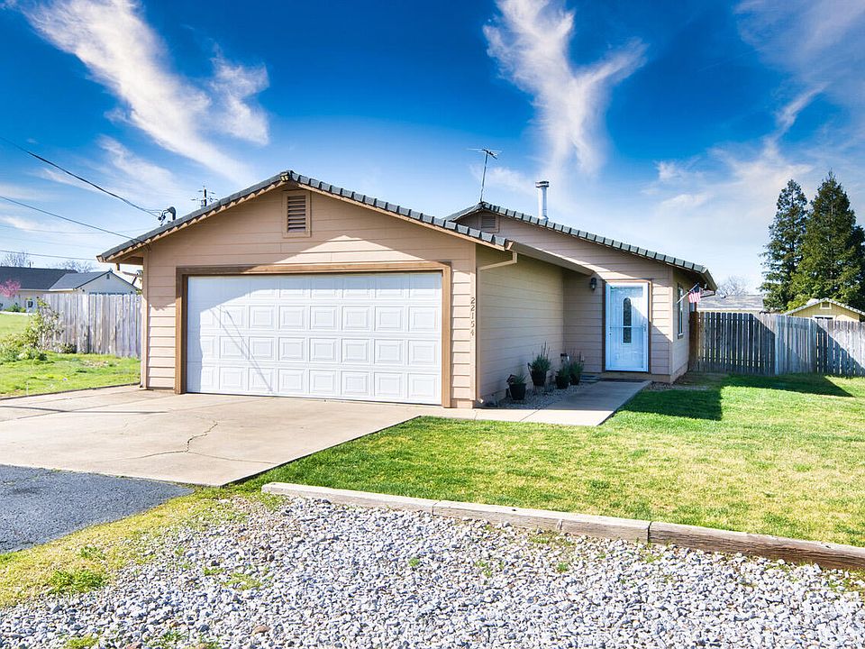 Welcome to your new haven of tranquility! Nestled in a gated community, this meticulously maintained 2-bed, 1-bath home invites you into a world of serenity and convenience. Step into a super-clean, move-in-ready USDA eligible residence boasting an open floor plan that seamlessly blends modern comfort with functionality. The home is beautifully updated, ensuring a contemporary aesthetic that complements the surrounding natural beauty. As part of this exclusive community, enjoy access to a private lake, community pool, Sacramento River access and boat launch, a private air strip, and even a restaurant/bar for socializing with neighbors. The equestrian center adds a touch of countryside charm, while RV parking with hook-ups caters to your adventurous spirit... Feel the warmth of central heat and air as you explore the thoughtfully designed interior. Additional features include a mini-split in the garage for added comfort and solar panels that embrace sustainability while reducing energy costs. This is truly a must see to appreciate and with the green belt next to the home, provides additional privacy and Mt Lassen Views.
