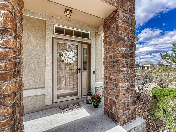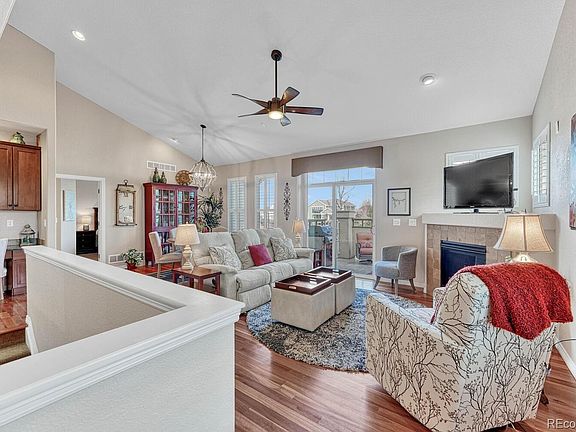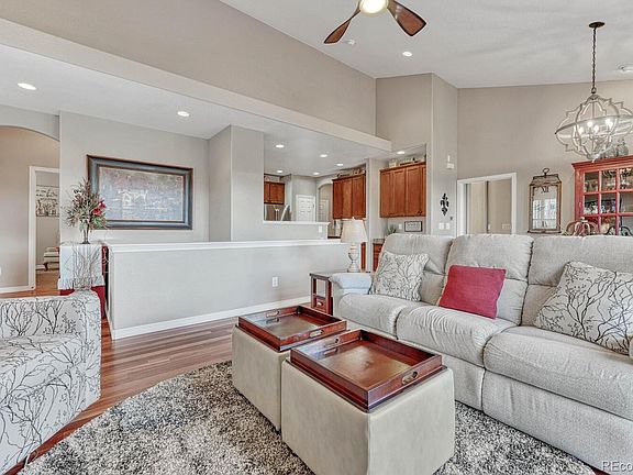RARE OPPORTUNITY TO BACK TO A GOLF COURSE AND HAVE MOUNTAIN VIEWS IN AN IMMACULATE RANCH HOME FOR LESS THAN $635,000. This beautiful end-unit home backs to the 8th green on the Saddle Rock Golf Course. The home has 3 bedrooms, 3 bathrooms and has been meticulously updated with recently re-finished cherry wood floors, new lighting and plantation shutters throughout. The main floor has an open floor plan with vaulted ceilings, two bedrooms, two bathrooms and an upgraded kitchen with cherry cabinets and granite countertops. Walk directly from the great room onto the patio overlooking the golf course and enjoy the amazing mountain views. The patio has a convenient gas hookup for your grill and is covered by a remote controlled retractable lighted awning, making it an ideal spot for your morning coffee and summer BBQ’s as you enjoy golf course living. The lower level features a large family/game room, one additional bedroom, a full bathroom and a large storage room. The home is wired for both a security system and speakers. All appliances, including the washer and dryer stay. Enjoy life in this low maintenance home as snow removal, lawn maintenance, exterior paint and roof are covered by the HOA. When you live in this beautiful community you have access to the Saddle Rock Golf Course and Clubhouse, a large outdoor pool, tennis, pickleball and basketball courts. Access to all of these activities will keep you active while the exterior of your home is maintained by the HOA. This home is conveniently located near C-470, shopping, restaurants, the golf course and right across from the Piney Creek Trail which is connected to over 80 miles of walking trails. Don’t miss out on this gorgeous home in the sought after Saddle Rock community! Welcome Home!