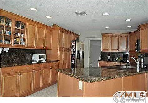 Great opportunity to live in a well maintained unique neighborhood with low HOA. This bright open home has split bdrms w/ a private master suite. Gourmet kitchen w/ spacious granite counters. Kitchen is adjacent to Fam. Rm., great for entertaining. A/C is 1 year old and is 2/zone!! Laundry room is under a/c. Electric panel in garage that accommodates a portable generator to power some main appliances. Large screened patio and pool. This oversized lot has a private backyard that backs up to Boca Rio Golf and Country Club.