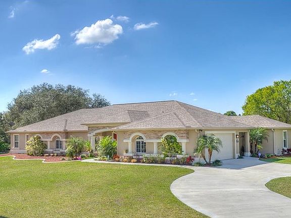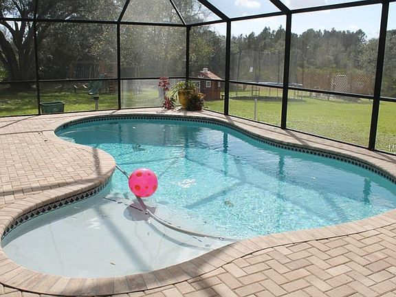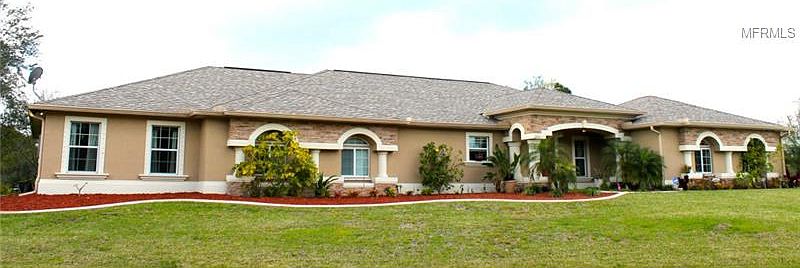 If you're looking for room this home definitely has it. This home is an absolutely gorgeous custom pool home located on a double corner lot with circular drive. This home has a 2 bedrooms 1 bath In-Law Suite with its own entrance with a large living room. The main portion on the home has 3 bedrooms, 2 baths a large open concept living room and kitchen, family room and a playroom which could be easily be used as an office,library, hobby or sitting room. The beautiful kitchen has lovely wood cabinets, granite countertops and an updated stainless steel appliance package. Both the Master and In-Law bathrooms have granite countertops and floor to ceiling tile showers with frameless shower enclosures and ceiling fans. You will find tons of upgrades in this home, from the tray ceilings, insulated Low E windows, Manablok water system, crown molding and plywood (not drywall) on the ceiling of the lanai. The living room has pocket sliders that open to a beautiful 31 x 13 brick paver deck leading out to the heated pool.