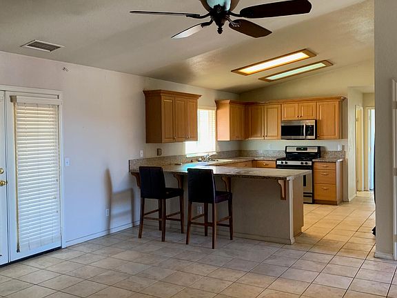 Enjoy the surrounding mountain views from your backyard. Updated 4 bedroom 2 bath home with 2 car garage and RV parking and RV gate. Home features new carpet in bedrooms, new paint, new water heater, granite countertops and stainless steel appliances. Inside laundry and backyard with endless opportunities. Formal dining room and living room with fireplace and french doors leading to covered patio. Situated near restaurants, shops, and dining.