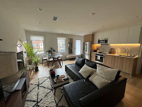 Fully furnished 2-bedroom, 1-bath condo tucked away in a tranquil corner of Upper Northwest D.C., offering 840 square feet of light-filled elegance and refined comfort. The home features soaring ceilings, sleek hardwood floors, and premium finishes throughout. The open-concept living area flows seamlessly into a modern kitchen with high-end appliances, ideal for cooking and entertaining. A designated desk/office nook makes working from home easy, while a video intercom system and remote-access entry provide modern convenience. Both bedrooms include queen-sized beds and ample storage. Additional comforts include in-unit washer and dryer, central A/C, and a free on-street parking permit. Just steps from a peaceful park and a short walk to Wisconsin Avenue's shops, restaurants, and grocery stores including Whole Foods and Trader Joe's this home combines urban convenience with serene living. This property has a minimum reservation term of 90 nights.