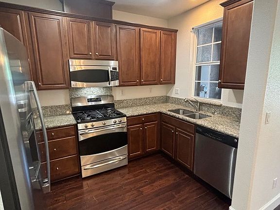 This 2 story single family home is located in Southeast Santa Rosa and features 3 bedrooms with 2.5 bathrooms in just under 1,300 square feet. You walk in the front door to the living/dining room combo with high ceilings and hardwood floors. The kitchen features granite countertops, stainless steel gas stove, dishwasher, microwave and refrigerator. There is also a 1/2 bathroom located on the main floor. All three newly carpeted bedrooms are located upstairs with 2 of the bedrooms sharing a full hallway bathroom with tub/shower combo. The primary bedroom features a walk in closet and primary bathroom with dual vanity and walk in shower. The laundry room is located on the 2nd floor and features new washer and dryer. Forced heat and A/C. Attached 2-car garage. 1 small pet negotiable. Sorry, no co-signers. 1 Year lease (MT) Placement