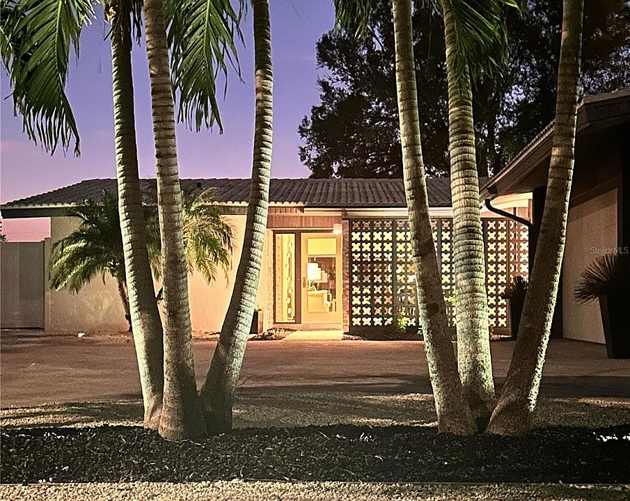 *** MID CENTURY MODERN GEM *** THIS RARE CUSTOM-BUILT FOREST LAKES COUNTRY CLUB ESTATES HOME AND HAS BEEN THOUGHTFULLY REIMAGINED and includes 3 bedroom / 2 bath / 2 car garage. The light, bright, open floor plan features all the interior features and amenities that modern day buyers demand delivered in an architecturally-relevant 1960's vintage Sarasota home that you will love! Coveted mid century design elements such as the WOOD BURNING FIREPLACE WITH OCALA BLOCK SURROUND, "FEASTMASTER" OUTDOOR BBQ GRILL, and ORIGINAL BREEZEBLOCK remain and commune harmoniously with modern day elements such as the high-end ITALIAN ARABESCATO BIANCO 24" STONE FLOORING, PGT IMPACT WINDOWS, AND SPLIT-FACE TRAVERTINE STONE FEATURE WALLS. This OPEN CONCEPT home was truly ahead of it's time. Upon entering the home, the first thing you see is 28 FT OF SLIDING GLASS DOORS which open reveal and EXPANSIVE 32' x 12' COVERED SCREENED LANAI AREA with POLISHED CONCRETE FLOORING that is ideal for entertaining. The PRIVATE BACK YARD is FULLY FENCED WITH HIGH IMPACT PVC FENCING and offers ZEROSCAPING for easy maintenance and mature specimen palm trees that lend a tropical feeling to the space. Inside the fully renovated GOURMET KITCHEN you will find dramatic SILESTONE WATERFALL COUNTERS, JENNAIR APPLIANCES including a 36" induction Cooktop, 36" refrigerator, under cabinet ice machine, microwave / oven combination, and under counter wine fridge. THE RICHELIEU CUSTOM KITCHEN CABINETRY features pull-out and soft close functionality that makes accessibility and storage a breeze. The matching RICHELIEU CABINETRY built-in to the FAMILY ROOM TV FEATURE WALL boasts a hidden fold-out desk and TONS OF ADDITIONAL STORAGE. The large master bedroom and bath will make you feel like you are at AN UPSCALE RESORT AND SPA. It's OK, SPOIL YOURSELF! Enjoy the oversized walk-in closet, ANTIQUE SHADED VENETIAN CHANDELIER, MGS SURGICAL STAINLESS FIXTURES, DVX BATH TUB, AND IMPRESSIVE ROMAN SHOWER. There are WAY TOO MANY UPGRADES to list them ALL here so ask your favorite Realtor for the complete brochure. However, we can't NOT MENTION the in-ground LED landscape lighting, BANKO commercial garage door, LEVITON wifi enabled lighting switches, KLIPSCH in-wall and ceiling speakers, and EMTEK door hardware throughout. The warm, friendly, and inviting neighborhood of FOREST LAKES COUNTRY CLUB ESTATES is highly sought after for it's large lots, OPTIONAL GOLF COURSE, and LOW $100/year HOA DUES. Close to world famous Siesta Beaches, Historic Downtown Sarasota, UTC Entertainment district, Southside Village, Sarasota Memorial Hospital, and SRQ Airport. If you have been looking for a home that is UNIQUE, TIMELESS, DYNAMIC, AND LUXURIOUS then THIS HOME IS AN ABSOLUTE MUST SEE!