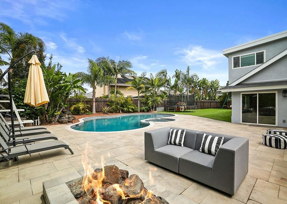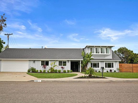 SPECTACULAR HILLTOP COASTAL-STYLE REMODEL! Desirable WEST SIDE of El Camino Real! Huge level corner lot! OPEN & AIRY floor plan w/PRIMARY SUITE DOWN! TROPICAL POOL SETTING w/ towering palms & bamboo, SPA & FIREPIT! Gorgeous curb appeal w/new lawn & plantings leading to new frosted glass double door entry. GREAT ROOM with “Santa Barbara Stucco” fireplace & quartzite hearth. Driftwood wood-like LVP flooring throughout! SHOWCASE GOURMET KITCHEN w/SS appliances, quartzite counters & backsplash. Designer light fixtures. All baths have designer quartz counters & tiles. NEW ROOF, Freshly painted exterior, horizontal slat fence, RV/“toy” storage behind gates. LARGE .25 ACRE lot offers private LEVEL turfed backyard! New MARBLE COPING at Pebbletech resurfaced POOL w/10 ft deep end & surrounded by spacious oversized paver decking. Prime corner lot on cul-de-sac street off Chestnut.
