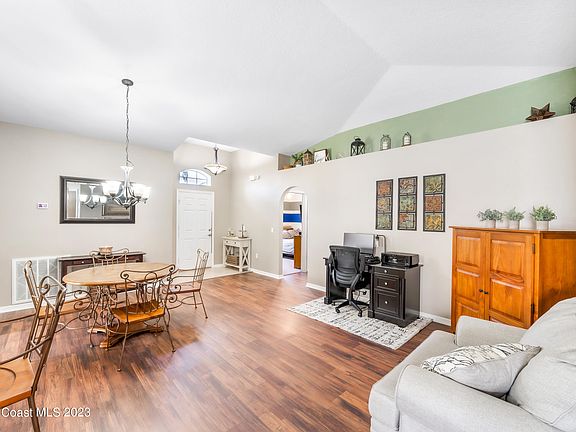 Look no further for the perfect family home centrally located in Melbourne. This property offers plenty of comfortable updates throughout; new kitchen counters, backsplash, cabinetry & appliances updated in 2021, AC and hot water heater in 2020, floors in 2016, master bath updated 2021 with an additional closet built out, and interior walls painted in the last five years. Additional features include an enforced security front door, alarm system wired throughout and in-wall termite prevention system to keep unwanted pests at bay. No dogs or cats have ever lived in the home; walls, floors &carpet have been wonderfully maintained. Back yard was fenced in in 2016, and offers plenty of space to enjoy the outdoors, plus, enjoy fruit from your two mango trees on the spacious screened porch.