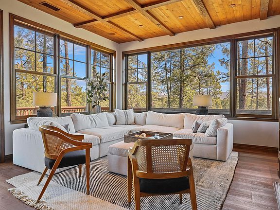 Nestled within the prestigious golf community of Chaparral Pines, this luxurious home offers a rare blend of size, elegance, privacy, and pure scenic beauty. Spanning over 5700+ ft² across two lots totaling 1.38 acres, this residence boasts stunning views of the majestic Mogollon Rim and surrounded by lush Ponderosa Pines. Recently remodeled to the highest standards, the interior features exquisite finishes and luxurious amenities throughout. The main level is designed for effortless entertaining and everyday living, with spacious living areas that flow seamlessly into the gourmet kitchen and dining area. Floor-to-ceiling windows capture the picturesque views and fill the home with natural light. The lower level of the home is a retreat of its own, featuring a finished basement with a basketball court that can easily be converted into a fitness center or customized to suit your lifestyle. Outside, the expansive deck is the perfect place to relax and enjoy the tranquil surroundings, while the pond adds a touch of serenity to the already picturesque landscape. With its unbeatable location overlooking the 15th Fairway, this home truly offers the best of luxury living in Chaparral Pines.