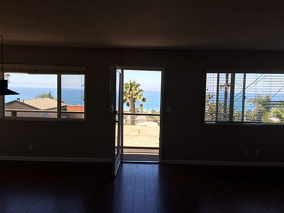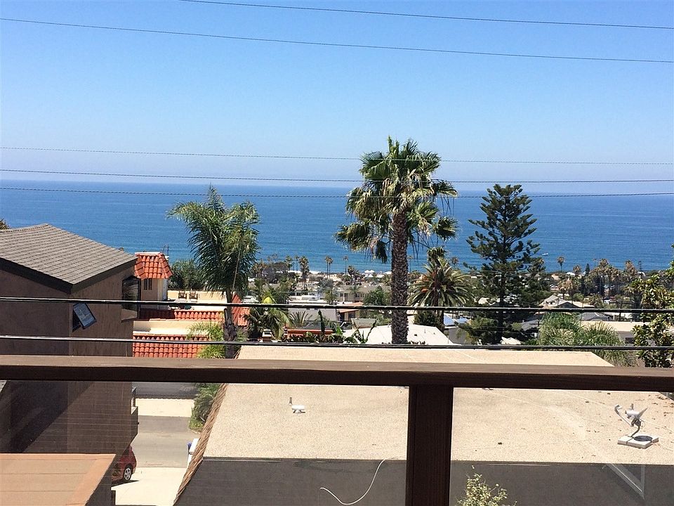 Panoramic white water ocean views from top level of duplex in Cardiff walking district. Open concept living room dining room and kitchen. Large private newly built deck with glass railings and plenty of room for relaxing or entertaining. Open kitchen with granite counter tops large island with cooktop and newer appliances. Washer and dryer hook ups in unit. 2 car attached garage and parking for 2 more cars in driveway. Walking distance to all; Cardiff Seaside restaurants and the beach.