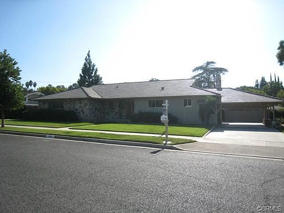 Immaculate one owner single story ''Victoria Woods'' home offering generously proportioned spaces in every room. Enter into a foyer that leads to a Formal Living Room/Dining Room with a floor to ceiling fireplace and view into the beautifully landscaped backyard. There is a large Kitchen adjacent to a massive Family Room with a second fireplace and large sliders to a spacious covered patio. There is detached Guest Suite of approximately 400 SF with its own bath and walk-in closet. Large level back yard offers ample space for all outdoor activites. All four large bedrooms have tons of storage. Master Bedroom with ensuite bath and a built in mirrored vanity. There are beautifully maintained wood floors throughout most of the house. 2 car detached garage in addition to the 2 car pore cochere off of the large laundry room. New concrete tile roof installed August 2011.