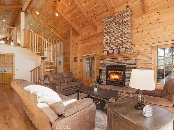 Welcome to your mountain home sanctuary, where nature's embrace and serene tranquility await. This stunning custom log home seamlessly blends rustic charm with luxurious comfort, situated against the tranquil backdrop of a lush greenbelt and bordering the scenic Snowflake trail. Crafted with meticulous attention to detail, this high-end mountain home boasts 3 bedrooms and 2 bathrooms across 1,890 sq ft on a spacious 13,170 sq ft lot (0.30 acres). Built in 2005, this newer construction embodies modern craftsmanship while retaining its timeless appeal. Revel in breathtaking panoramic views from every room, as large windows invite the beauty of the outdoors inside. The versatile layout includes a generously-sized 14' x 24' loft, perfect for a man cave, office, or any desired retreat. The grandeur of the great room is accentuated by soaring 21' high ceilings adorned with natural beams, complemented by a raised hearth stack stone wood-burning fireplace, creating a cozy ambiance for gatherings and tranquil evenings. The heart of the home, the kitchen, is a culinary haven with granite countertops, ample cabinetry, and a propane cooking stove, inviting culinary adventures and shared meals with loved ones. Adjacent, the laundry room offers additional storage and convenience. Completing the allure of this home is the oversized garage, featuring double 9' doors with 14' ceilings, providing ample space for storage and versatility. Set within the sought-after community of Pine Mountain Club, a wealth of amenities awaits, including a prestigious golf course, tennis courts, inviting swimming pool/spa, and a welcoming clubhouse. Plus, enjoy the convenience of being within walking distance to PMC Village, offering access to local shops, dining, and community events. With an abundance of hiking trails and natural marvels just moments away, endless adventures and discoveries are yours to savor. Don't miss the opportunity to experience the magic of this special home firsthand. Schedule your showing today and make this idyllic retreat your own before it's too late!