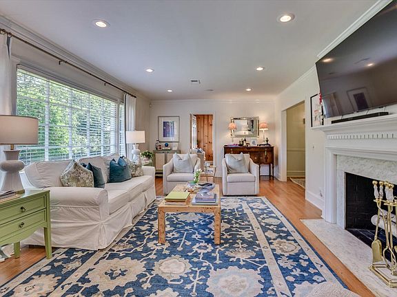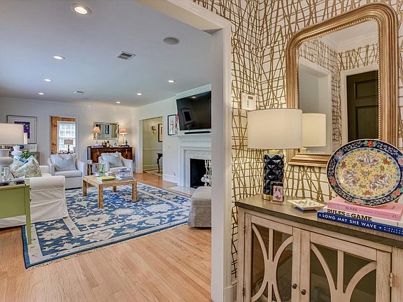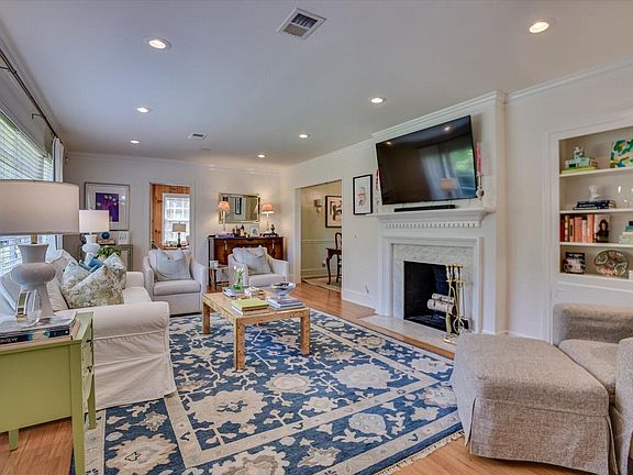 The owner's suite is a true retreat, featuring his-and-hers closets and a renovated bath with a walk-in tile shower. Bedrooms 2 and 3 share a well-appointed hall bath, while the 4th bedroom, currently used as a cozy sitting room, boasts its own full bath with exterior access, making it perfect for an in-law suite.