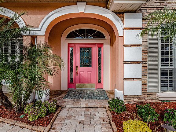 This house has every amenity you can think of. From the front door it is evident that the sellers spared no expense decorating and upgrading this home. Features include porcelain tile throughout, upgraded light fixtures, upgraded plumbing fixtures, Office/Guest room with built in Murphy Bed, Plantation shutters, double trey ceilings, wainscoting and crown molding, glass tile back splash in kitchen with upgraded stainless appliances, beautiful back yard fountain with butterfly garden and tile pavers, extensive landscaping, gutters. Home also includes built in surge protector, large covered lanai with designer ceiling fans, new hot water heater, gas fireplace, new insulated garage door and so much more. Come take a look today!