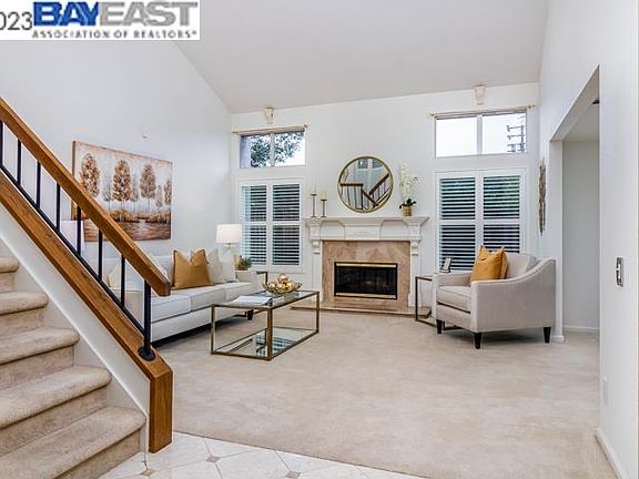 Come see this home in the fabulous and secure Sandpiper complex. With cozy gas fireplace in the living room with vaulted ceilings and bonus space off the dining area that the can be used as an office, play area, etc. The kitchen features a breakfast bar, beautiful wood cabinets with glass inserts, and has a pantry with pull out shelves. The primary bedroom has mirrored closet doors and luxury custom built-in drawers and shelving. The attic also has a large finished and lighted space for more storage. The garage also has custom storage and a work bench. The home also boasts air conditioning, a Ring doorbell, can lights, and is a great location that is within walking distance to downtown San Leandro, BART, and other amenities.
