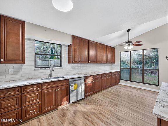 Completely Renovated Mid-Century Modern! 4 bedrooms, 3 bathrooms plus an Office! Offering over 2,000 square feet of stylish comfort in a desirable Orange Park neighborhood. Step inside to discover a stunning chef's kitchen featuring rich wood cabinetry, quartz countertops, and new stainless-steel appliances, designed for both everyday living and effortless entertaining. The home's thoughtful updates continue with remodeled bathrooms, designer vanities, modern lighting, and luxury flooring that flows seamlessly throughout. Freshly painted inside and out, every detail has been curated for a move-in-ready lifestyle. The spacious owner's suite is a private retreat, complete with 2 large walk-in closets, spa-inspired bathroom, jetted soaking tub, and separate enclosed shower. Every room in the house has an exterior door, blending indoor and outdoor space and light. The perfect balance of modern design and timeless appeal - all set within one of Orange Park's most sought-after areas.