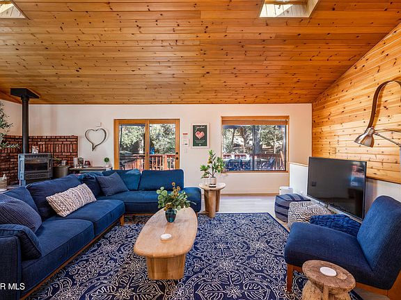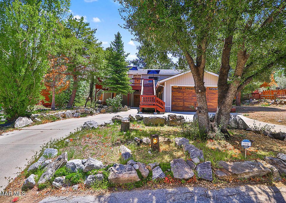 Welcome to your dream mountain escape! Nestled on a quiet, tree-lined street just a short stroll from the Pine Mountain Club Village, park, and clubhouse, this beautifully updated home is the perfect blend of rustic charm and modern comfort, ideal for full-time living or weekend getaways. Step onto the inviting redwood front deck, surrounded by towering pines, and imagine unwinding with your morning coffee or enjoying peaceful evenings under the stars. Inside, you're welcomed by a formal entry leading into a spacious great room featuring soaring vaulted knotty pine ceilings, dramatic skylights, and a cozy pellet stove set, perfect for chilly mountain nights. The remodeled kitchen is a chef's delight, boasting granite countertops and stainless steel appliances. The open-concept design seamlessly connects the kitchen to the living and dining areas, making it easy to cook, entertain, and stay connected with guests. Glass doors lead out to a large, partially shaded back deck. The main level includes a generous primary suite with private deck access, a walk-in closet, and ensuite bathroom, plus two additional bedrooms and a full hallway bath. The loft area provides versatile space. Downstairs, a spacious family room offers a second living area with direct access from the 2-car garage and a separate exterior entrance. Two bonus rooms could easily function as additional bedrooms. Situated on a beautifully wooded, level lot with multiple serene sitting areas, this home offers ample outdoor space for birdwatching, entertaining, or simply enjoying the mountain lifestyle. The circular concrete driveway and side yard provide abundant parking, and attached 2-car garage. This one-of-a-kind home offers space, privacy, and charm in a peaceful mountain setting, just minutes from the heart of the community. Don't miss your opportunity to own a slice of mountain paradise!