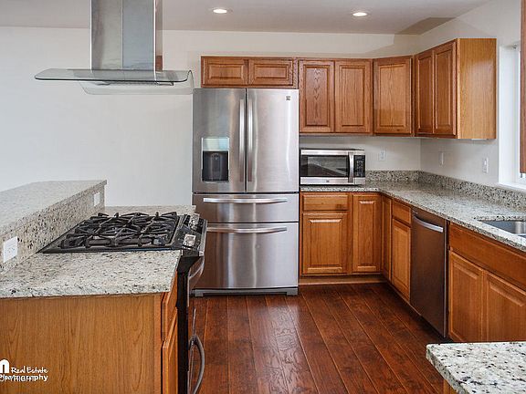 Light and Airy Living within this Gorgeous Duplex Offering Spacious Main-Floor Living, within an Open Concept Design w/Mt. Views! Matching Granite at ALL Surfaces Throughout, Upscale SS Appliances, Wired for Media&Sound & Gas Fireplace! Pamper Yourself w/Heated Master Bathroom Floor, Upscale Lighting, Walk-In Closet and a Garage w/Room to Park Your Toys! Only Minutes to JBER/Providence/UAA!