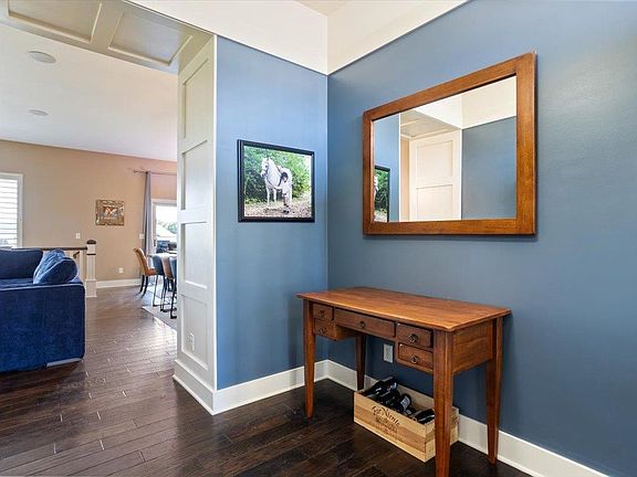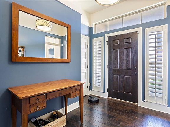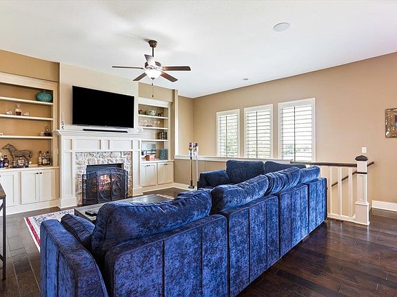 Stunning 5 Bed/3 Bath ranch nestled in Monarch Landing cul-de-sac. This home boasts an inviting open floorplan with engineered hardwood flooring throughout the main floor, complemented by charming woodwork details and built ins. The kitchen features a large island, gas cooktop, and walk-in pantry.The main floor master suite offers a luxurious retreat with a shower featuring dual heads, a relaxing bath, double vanity, and a spacious walk-in closet. Convenient main floor laundry and drop zone add to the ease of daily living. Two additional bedrooms and a bath complete the main level split floorplan. Enjoy outdoor living with a covered deck off the kitchen/dining area, ideal for entertaining or relaxing. The mid-level walk-out leads to a basement designed for entertainment, featuring a large family rec room, thoughtful built-ins around the stairs, a wet bar, and a dedicated theater room for movies and gaming. Two more generous bedrooms and a full bath provide ample space for guests or family members. Outside, mature landscaping, privacy fencing, and an irrigation system with a well ensure a beautifully maintained yard year-round. Upgrades include plantation shutters throughout, an indoor/outdoor whole house sound system, and more, making this home a true gem in Monarch Landing.