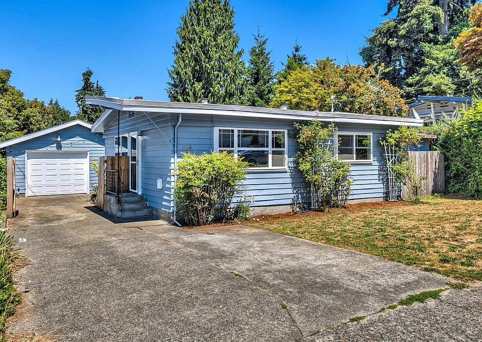 Charming & Sunny two bedroom, one bath rambler has refinished hardwood floors throughoutliving space & bedrooms. Farm sink & original woodwork in kitchen. Detached garage w/ separate workshop. Enjoy the private, fully-fenced backyard w/ patio, perfect for summer BBQ's and gardening. Fresh exterior paint, updated lighting, updated vinyl windows, new garage door & garden shed with power. Great Renton Highlands location, close to shopping, schools, RTC, Boeing & The Landing.