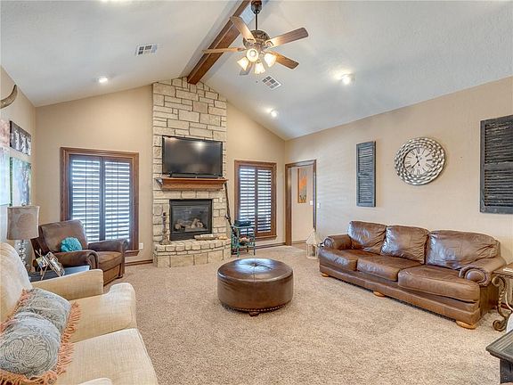 Talk about curb appeal! This attractive home is located in wonderful Praire West Estates and offers tons of extras! Vaulted ceilings, crown molding, custom cabinetry, plantation shutters, spacious living w/ gas fireplace, office or flex space, basement, 3 car garage, and more! The kitchen is an entertainer's dream with a huge work island, plenty of counter space and storage, stainless appliances, and a sizable dining area. You'll love the roomy master suite with an impressive walk-in closet and oversized bath complete with jetted tub, double sinks, and pass-through hamper. The outside is an oasis with the Blue Haven pool and spa, covered back patio, and cooking island with grill. Great size yard is complete with a sprinkler system and wood privacy fence. When you're not playing in your pool, enjoy walking the neighborhood, going to the park, or ride your golf cart across the street for a couple of rounds! This is the home for YOU.