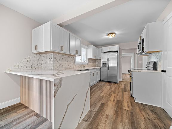 This beautifully renovated five-bedroom, two-bath home offers a perfect blend of modern style and comfort. The open living area flows seamlessly into a stunning kitchen with shaker-style white cabinets and a striking quartz waterfall countertop. Luxury vinyl plank flooring runs throughout, adding both elegance and durability. The bathrooms feature tasteful tile work, and the master suite includes its own full bath for added privacy. Natural light floods the home through new windows, complemented by ample recessed lighting, giving the space a bright, airy feel. Notable updates include a brand-new HVAC system and a freshly paved driveway. Outside, the spacious backyard offers plenty of room for outdoor living. With all these upgrades, this home is move-in ready. Don’t miss the opportunity—schedule your showing today!