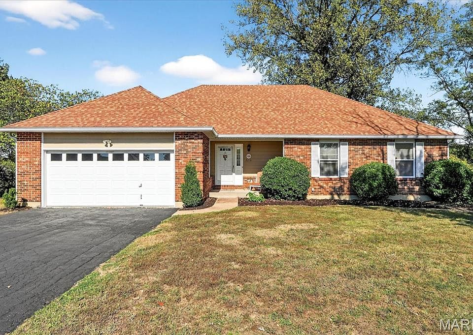 Welcome home to this charming ranch in a highly desirable community! Featuring two bedrooms that could easily be converted into a three-bedroom layout (3 bedroom plan in supplements), this home offers flexibility to fit your lifestyle. The finished lower level includes a possible sleeping area/office, a third full bathroom, a walkout basement, and a fantastic rec room, perfect for entertaining or relaxing. On the main level, you’ll find vaulted ceilings, skylights that fill the home with natural light, and a Energy King fireplace insert in the family room. The primary suite offers its own ensuite bath and walk-in closet. Step outside to the deck which boast a beautiful view perfect to relax and unwind. Open stairs lead to the finished lower level, providing even more versatile living space with plenty of storage. The oversized garage offers ample storage and parking. Located less than a mile from the intersection of Highway 44 and Highway 100, you’ll enjoy both convenience and tranquility. Community amenities include a pool and a peaceful pond, ideal for relaxation and recreation. Recent updates include a new roof and 6” gutters (2024), a 50-gallon hot water heater (2021), and beautiful new LVP flooring throughout the main living areas, freshly painted walls and ceiling. Refrigerator, washer, and dryer stay, making this home truly move-in ready. Don’t miss your chance to own this well-maintained home offering comfort, flexibility, and room to grow! Trustee is licensed Missouri Real Estate agent.