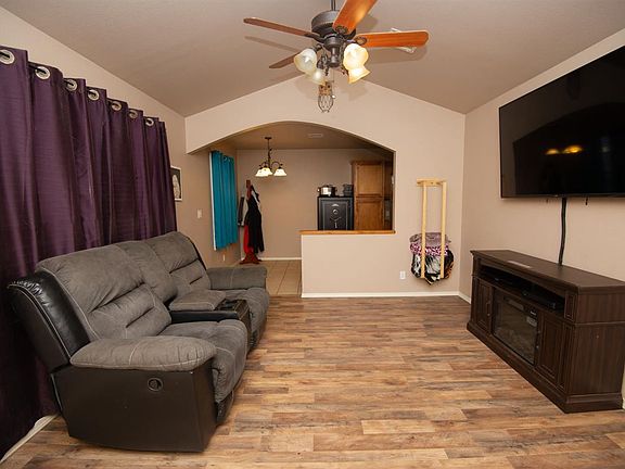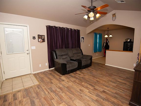 Wonderful home for a first-time home buyer. Arched openings in living room leading to kitchen and hallway add character to this move-in ready home. Three nice-sized bedrooms with large closets and two full bathrooms, also with great storage. New vinyl flooring in living room, hallway and one bedroom. Ceramic tile floors in kitchen, utility and bathrooms.