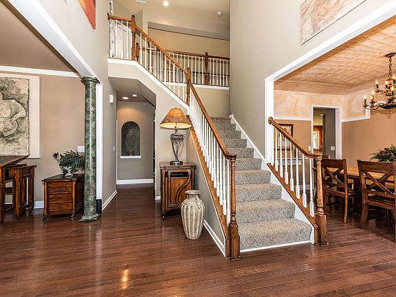 Nestled on a very private, heavily wooded 1.17 acre cul-de-sac lot, this home offers a serene, park-like setting and an extraordinary, custom-built outdoor living space featuring a massive deck, stacked stone waterfall and fireplace. The lush landscaping, picturesque driveway and curb appeal are sure to impress. The home's open, flowing floor plan and thoughtful design create the perfect environment for comfortable living and entertaining-- indoors and outdoors. The private office is a plus for those who work from home. Large morning/sun room is great flex space adaptable to many uses. Love to entertain? The large cook's kitchen has tons of cabinet and counter space, double ovens, huge island, walk-in pantry. Stunning 2-story great room with a dramatic floor-to-ceiling stacked stone fireplace. Serene and spacious owner's suite is a true retreat. Potters Creek Estates is an intimate 22-home neighborhood in a tranquil country setting close to all the amenities of sophisticated city life.