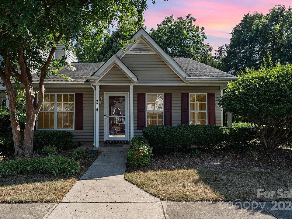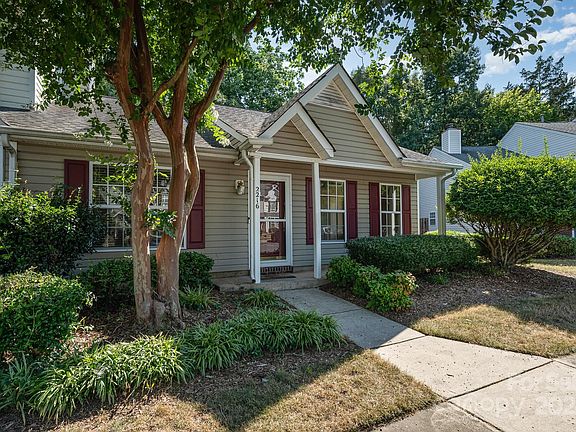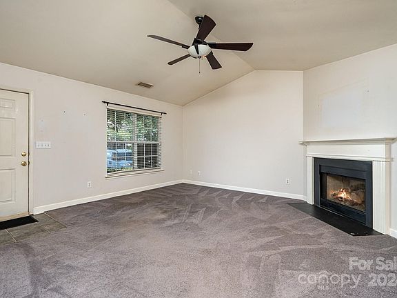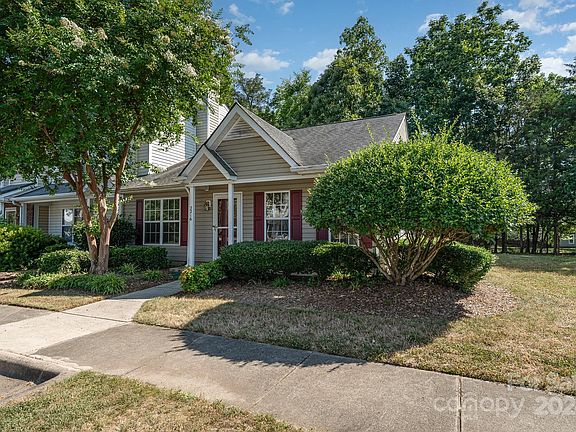 Welcome to a cozy neighborhood close to shopping, entertainment, downtown Charlotte, Lake Wylie, easy interstate access, and a hospital. This one-level townhome has an open floor plan, vaulted ceilings, a private back porch, two nice size bedrooms and a large den with a fireplace. The community has a pool and a dog park. New HVAC in 2023 and all appliances less than a year old. New Sliding back door and front storm door replaced this year. Tile in both bathrooms. Water is included in the HOA dues.
