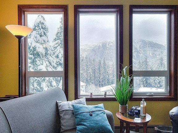This is a rare opportunity to own an upper level end unit condo that features vaulted ceilings and beautiful views! The condo was built with an additional room that can be used as a third bedroom or bonus/office space. Listen to the peaceful sounds of Lawson Creek from this end unit. Many improvements have been done to this home that include granite counter tops in the kitchen and bathrooms, newer laminate floors in the kitchen, and so much more. A list of all the improvements can be provided. The unit also includes a 1-car garage and is near the bus line for easy access to Douglas and Downtown Juneau. Don't miss this one!