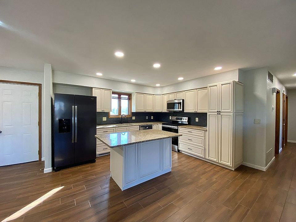 Showings available starting 12/29/21 with a pre-approval letter. This updated split level home is located in a terrific neighborhood walking distance from a walking path, soccer fields, and park area. In 2020 the kitchen was completely remodeled with granite countertops, new cabinets, an added island, and stainless steel appliances. Flooring was completely redone with wood-look tile in main areas and carpet in the bedrooms and stairs. Full remodel of the master bath and secondary bath upstairs. Downstairs highlights a massive laundry/mudroom with a half bath, a bonus room, and a living area with built-in cabinets and beverage fridge for your entertaining. Outside highlights a deck area, fire pit area, and more.