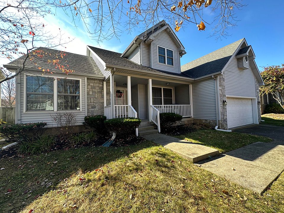 This charming 3 bedroom, 2.5 bathroom home is move-in ready. All main amenities, including laundry room, are located on the first floor, making daily living easy. A covered front porch and screened-in back porch expand your living/entertaining space and the backyard features a full privacy fence. Vaulted ceilings accentuate the natural light in the great room and a gas fireplace gives the room a cozy feel. The eat-in kitchen features a breakfast bar, walk-in pantry and a built-in workspace/drop zone. The primary bedroom has vaulted ceiling and the ensuite contains a contemporary jetted tub, separate shower, double vanity, and walk-in closet. The second-floor features two bedrooms a full bath, as well as a large storage area that could be converted into additional living space.