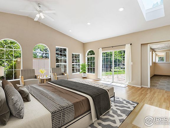 Don't Miss Out on This Deal! Plus, seller's preferred lender is offering a credit to reduce your buyer's interest rate. Inquire to learn more!* Nestled on a serene cul-de-sac in the heart of Loveland, Colorado, this charming 1970's era home boasts both character and modern comforts. Just steps away from the picturesque Silver Lake, renowned for its walking and biking trails, this property is a haven for outdoor enthusiasts. With 5 bedrooms, 4 bathrooms, and two spacious living areas centered around a cozy fireplace, there's ample space for everyone. The home features an addition with its own exterior entrance and foyer, offering endless possibilities-perfect for an at-home business or a luxurious primary suite. Enjoy the warmth of a sunroom that floods the home with natural light. The hard surface flooring throughout enhances the home's appeal. Outside, you'll find a large private fenced-in backyard with mature trees, beautiful gardens, and flowers. Relax under the covered patio area or explore the lush greenery. This tranquil property offers a perfect blend of indoor and outdoor living.