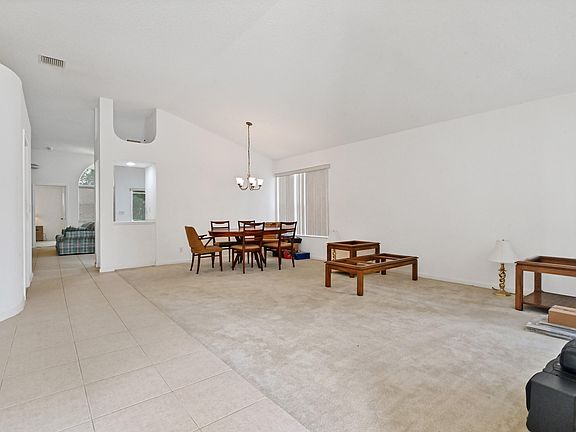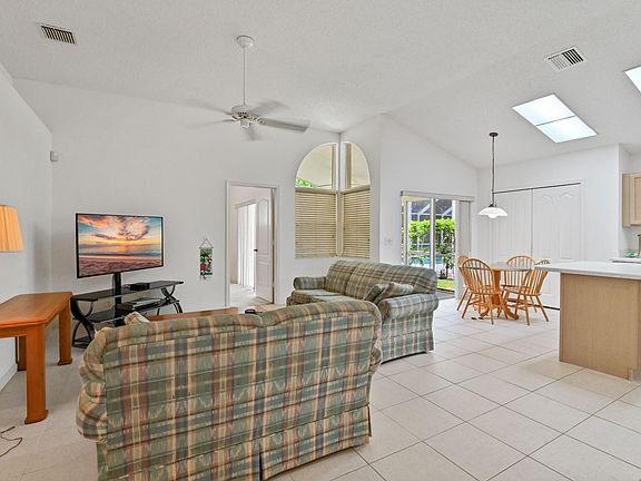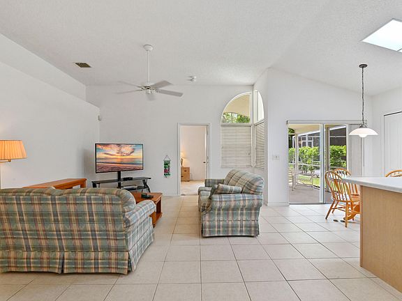 Welcome to your dream home in the gated community of River Bridge! This stunning single-story residence boasts 3 bedrooms and 2 bathrooms, offering a perfect blend of comfort and elegance. NEW ROOF installed in 2024. New AC installed in 2024.Step inside to find a spacious living and dining area with volume ceilings that create an open, airy feel. The family room provides a cozy space for gatherings, while the stack bedroom design ensures privacy for everyone. The kitchen is a chef's delight, featuring a central island, an eat-in area, and plenty of counter space for meal prep and entertaining. The master bedroom is a true retreat, complete with a walk-in closet and an ensuite bathroom that includes dual sinks, a separate tub, and a shower. Enjoy your mornings and evenings on the screened patio, overlooking a wide, relaxing backyard.