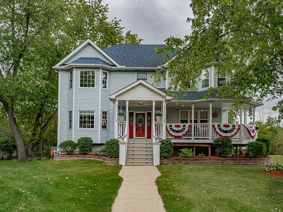 Here's an amazing opportunity to raise your family in a custom built home originally built in 1998. This beauty sits on your own private 2.2 acres lot that backs up to the Fox River. This is a 5 bedroom, 3.5 bathrooms that has a walk out basement with a hot tub. The home is super clean with many updates. Master bedroom/bath has a jacuzzi tub, walk in closet and an attached balcony. The gorgeous family room with walls of windows looks out over the expansive lot to the Fox River. Over 150 ft of wrap around porch to view the abundant wildlife that is attracted by the river. From the deer grazing in the backyard to fox, eagles and wild turkeys just to name a few of the regulars. The oversized 5 car garage has a heated floor in the three largest bays for your hobbies or mechanical duties to be done all year. The 2nd floor can be finished for extra living or office space. The enormous driveway has IDOT rated construction and a reinforced concrete pad for heavy equipment or RV. Only 10 minutes from the train station and walking distance to shopping and restaurants. A MUST SEE!
