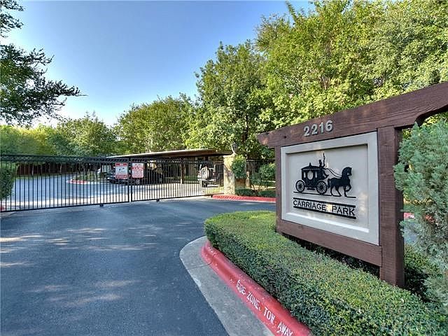 Private, top floor, end unit, with a huge bed and walk-in closet. Enjoy a quiet tree view in a spacious sun room/study. Easily could be converted to a second bedroom. All in the heart of the 04. This gated gem, has an open floor plan with vaulted ceilings. Stainless appliances, granite counters and bar seating. Fridge/washer and dryer included. Wired for Google Fiber, this gently lived condo beckons you!