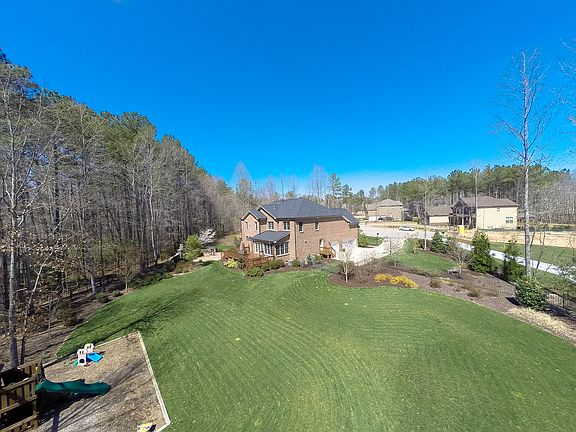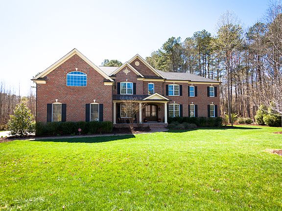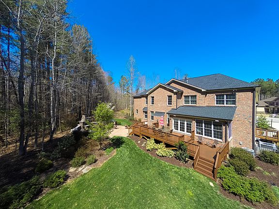 Stunning brick estate on .92 acre lush landscaped cul-de-sac lot! 5 bedroom + 5.5baths on amazing lot! Grand Foyer w/spiral staircase. 1st Floor Guest/In-Law/Nanny Suite+Sitting Room. Separate Office. Sunny Tile Sunroom.Gourmet Kitchen/appliances. Rear Stairs.Family Rm+Stunning 2-story stone fireplace+wet bar. Master Suite w/private living room and fireplace+huge bath. 2nd Floor Loft. Amazing private Back Yard including Outdoor living and kitchen with custom fireplace. Close to Crossroads, US-1, NC State